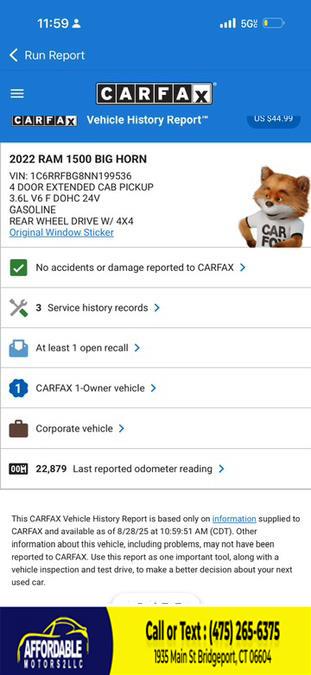 2022 Ram 1500 Big Horn 4x4 Quad Cab 6''4" Box, available for sale in Bridgeport, Connecticut | Affordable Motors 2 LLC. Bridgeport, Connecticut